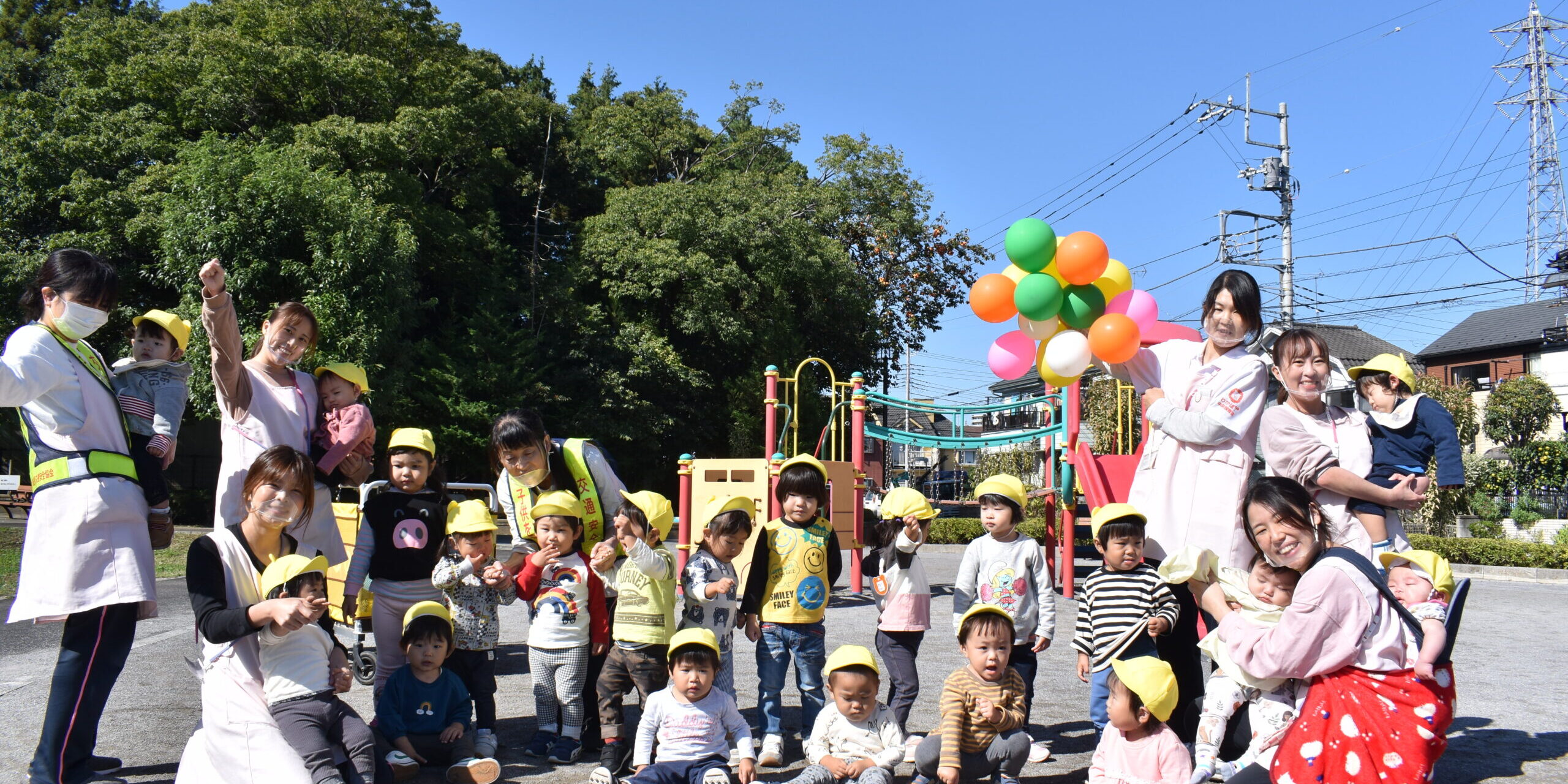 先生やお友達と歌を歌ったり、お話したりしながら片道40分ほどかけて公園まで歩きました。