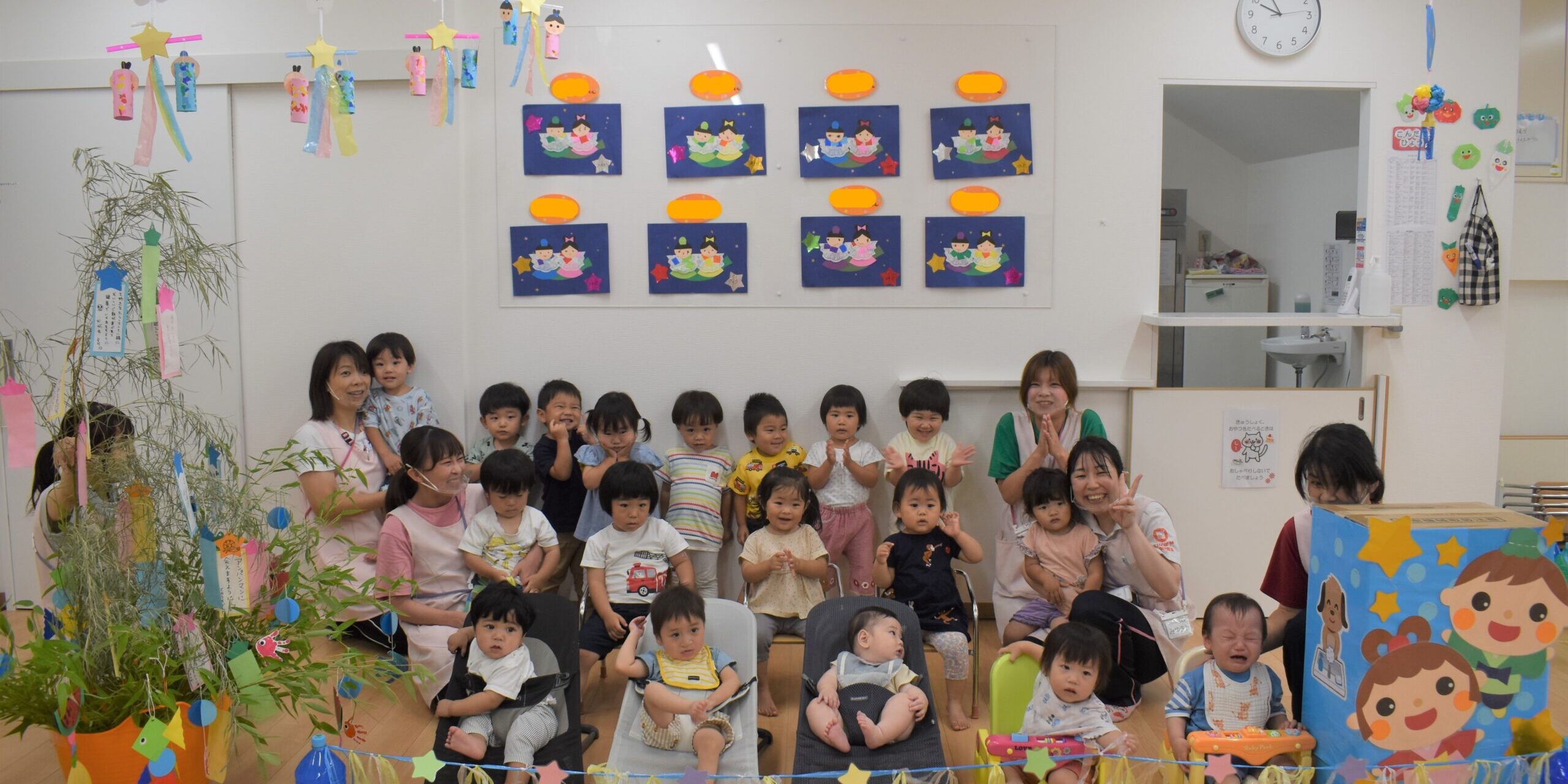7月72022今日は七夕集会を行いました。 七夕に向けて笹飾りの制作をしたり、願い事を書いた短冊を用意したりと心待ちにしていました。 七夕集会では、ペープサートで由来について聞いたり たなばたの歌を歌ったりしました。 大きな声でじょうずに歌っていましたよ♪ 最後は、天の川をわたって織姫と彦星に会いに行くミニゲームをして遊びました☆ みんなの願い事がかないますように☆彡 Category: ブログBy わかば中央保育室2022年7月7日 Author: わかば中央保育室 Post navigationPreviousPrevious post:6月29日 誕生日会NextNext post:7月26日 食育活動Related Postsハロウィンパーティ2025年10月30日室内遊び2025年10月29日ハロウィン制作2025年10月29日10月の作品2025年10月23日10月誕生会2025年10月23日秋の保育室2025年10月22日