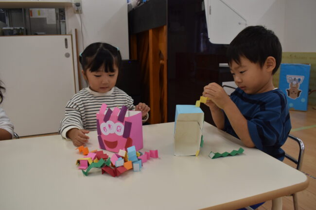 ハロウィン制作 お知らせ, ブログBy わかば中央保育室2025年10月29日うさぎ組としまうま組は、ハロウィンパーティに向けておばけの箱を作りました😊👻 しまうま組さんのおばけは個性が溢れていますね! うさぎ組さんは帽子の色や目の位置を自分で決めて作りました! お…