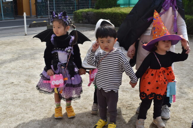 ハロウィンパーティ お知らせ, ブログBy わかば中央保育室2025年10月30日今日は子どもたちが楽しみにしていたハロウィンパーティをしました! 仮装をして、頑張って作ったお菓子BOXを持ってお散歩に行くと… たくさんお菓子をもらうことが出来ました😍🎉 仮装姿がみんな…