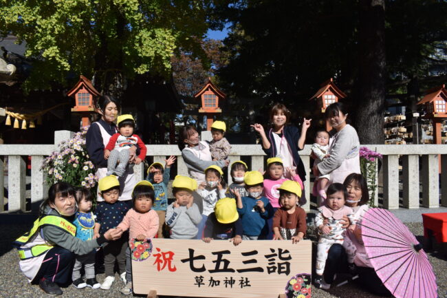 子どもたちの健やかな成長を願い、草加神社へ七五三参りに行きました。 先生にお参りの仕方を教わりながら、一緒にお参りをしてきました。 この日のために制作した飴袋もかわいく仕上がりました♪
